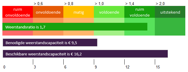 We beoordelen een ratio van 1,7 als ruim voldoende. We houden de risico’s steeds actueel. Daardoor verandert het weerstandsratio regelmatig. De schommelingen blijven klein.